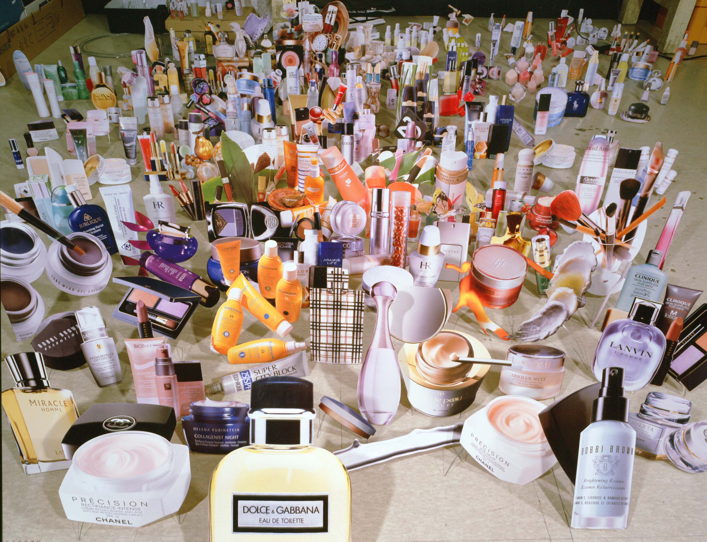 이 과정에서 작품은 입체(상품) → 평면(잡지 이미지) → 입체(조각) → 평면(사진)으로 매체적 반전을 거듭한다. 실재의 상품은 광고 이미지로 평면화 되고, 다시 조각으로 세워졌다가, 최종적으로 또 한 번 사진으로 환원된다. 이 반복적 전환은 사진의 평면성과 조각의 입체성을 교차시키며 이미지와 실재 사이의 위계를 끊임없이 교란한다는 점에서 ‘데오도란트 타입’과 뚜렷한 연관성을 갖는다.